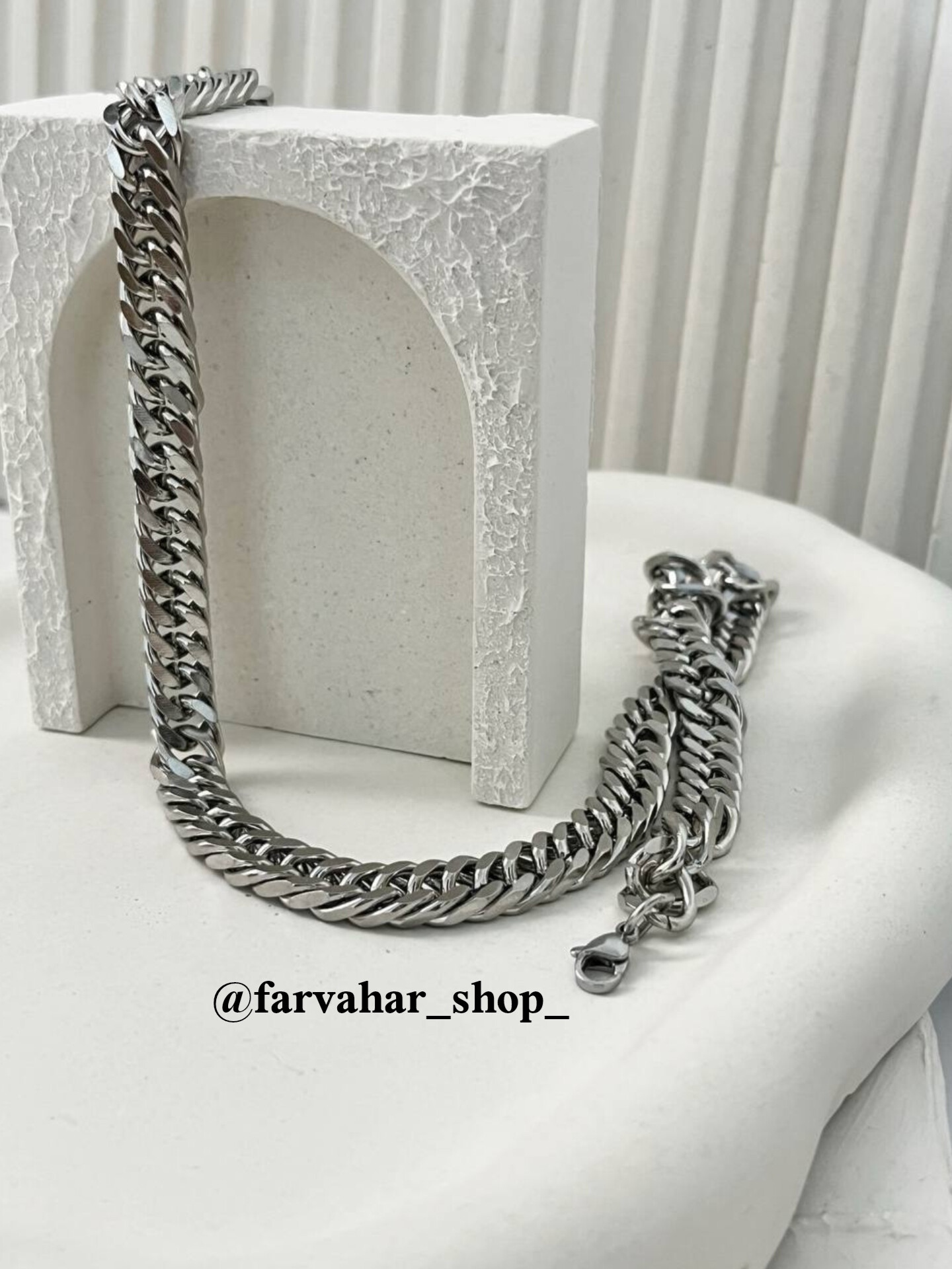 زنجیر مردانه کارتیر دوبل❤️🔥استیل. زنجیر ۵۰ سانت. زنجیر 65 سانت. دستبند : ۱۷ سانت.