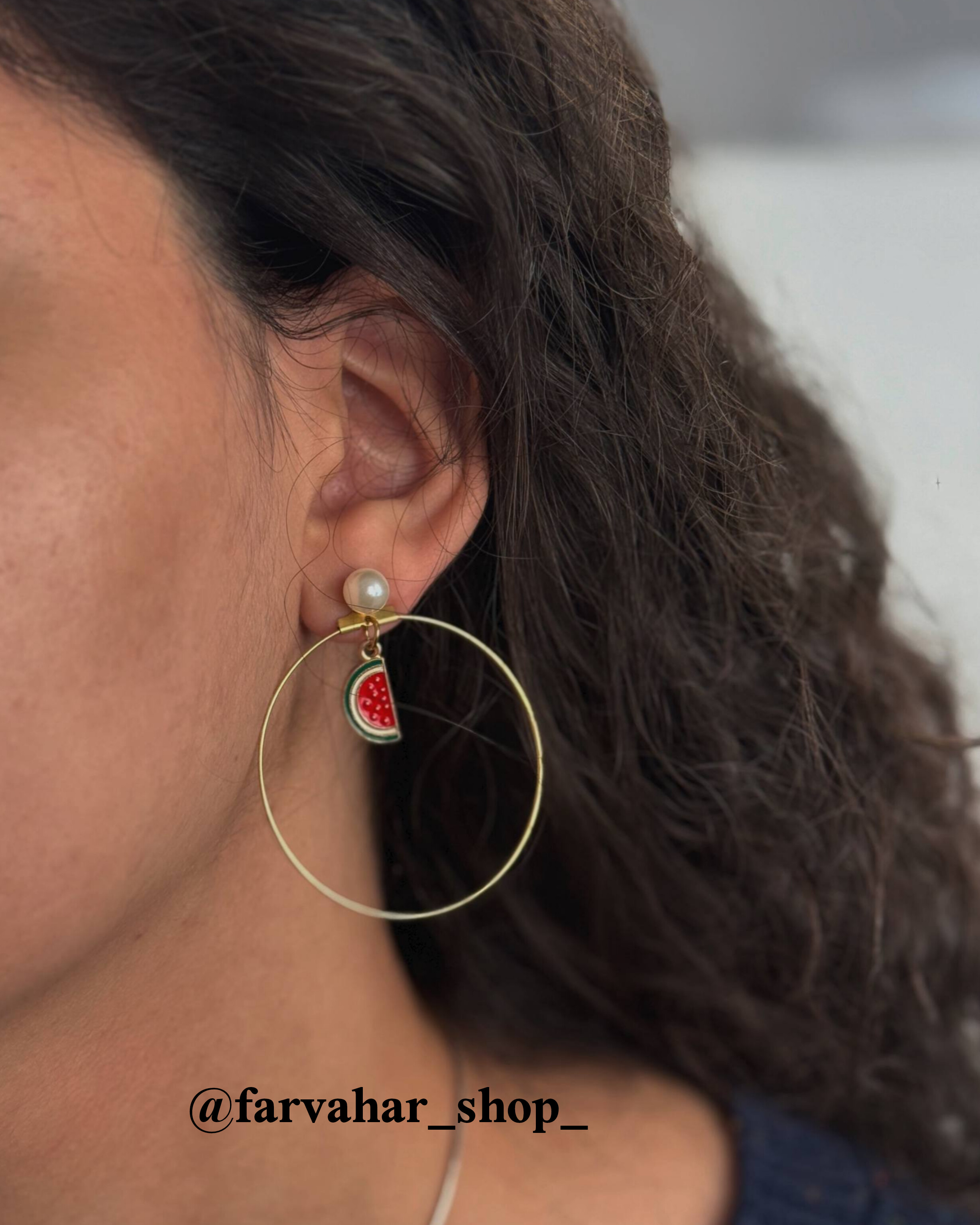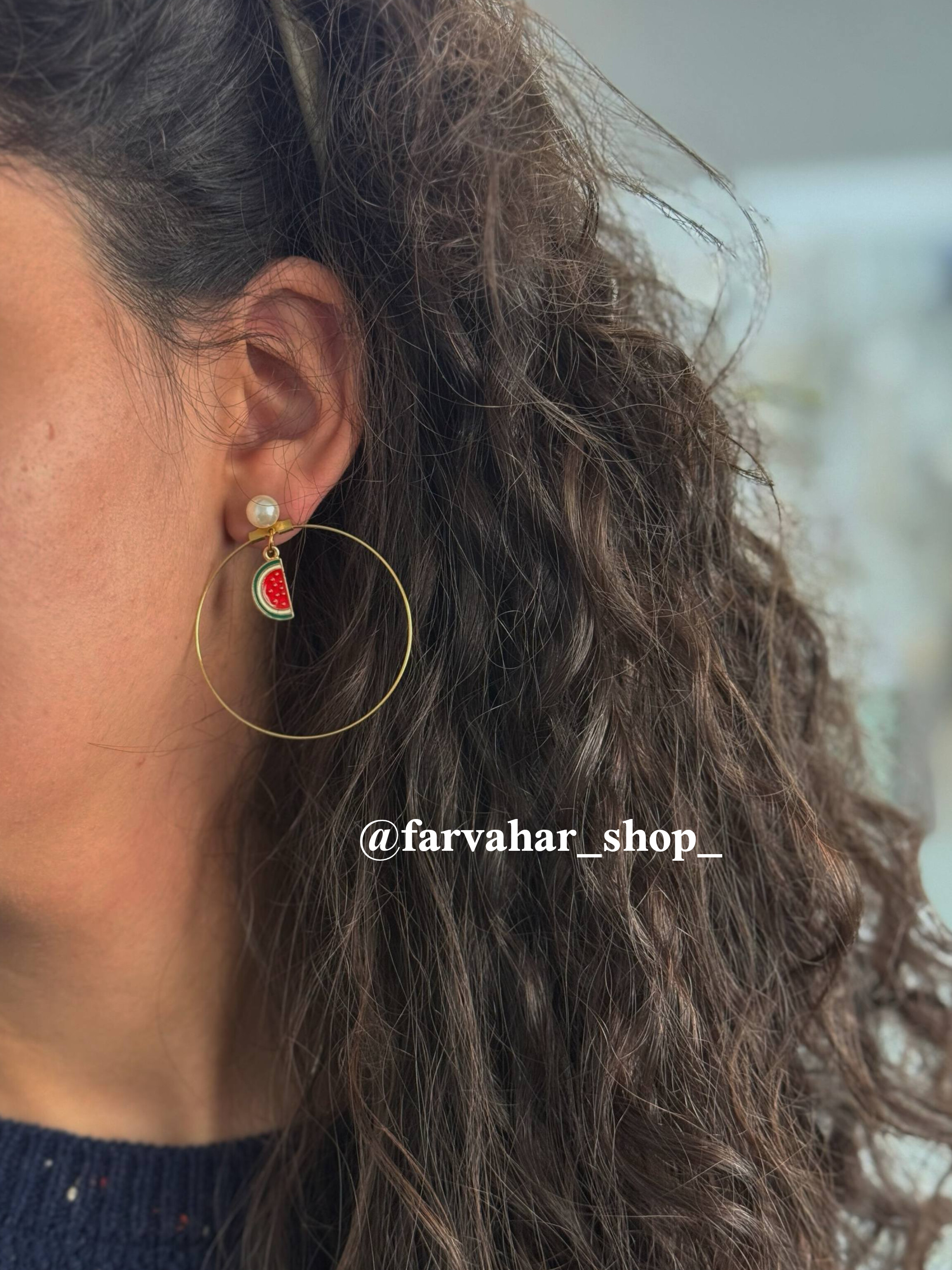 گوشواره هندوانه یلدایی 🍉. حلقه برنجی و سبک ✅ از گوشواره مروارید میتونید به صورت جدا استفاده کنید ✅
