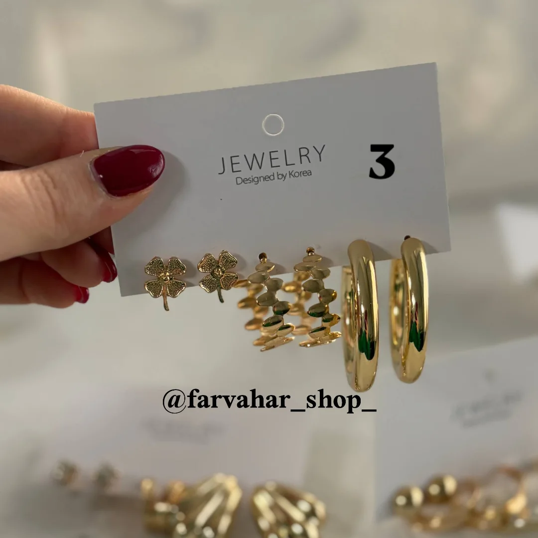 کلی پک گوشواره های طلایی جذاب داریم 🥲 آبکاری شده ✅ به صورت پک به فروش میرسد (هر پک شامل 3 عدد گوشواره)