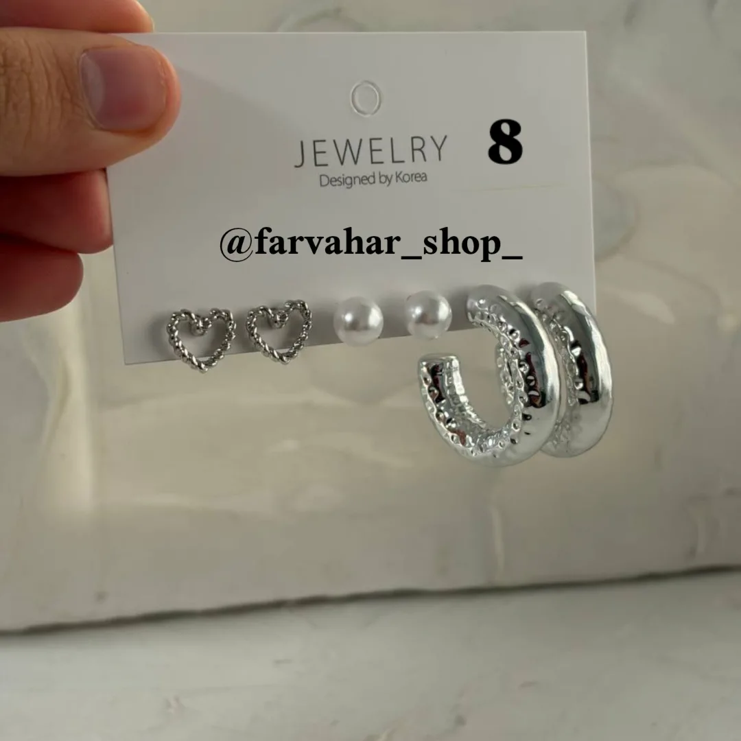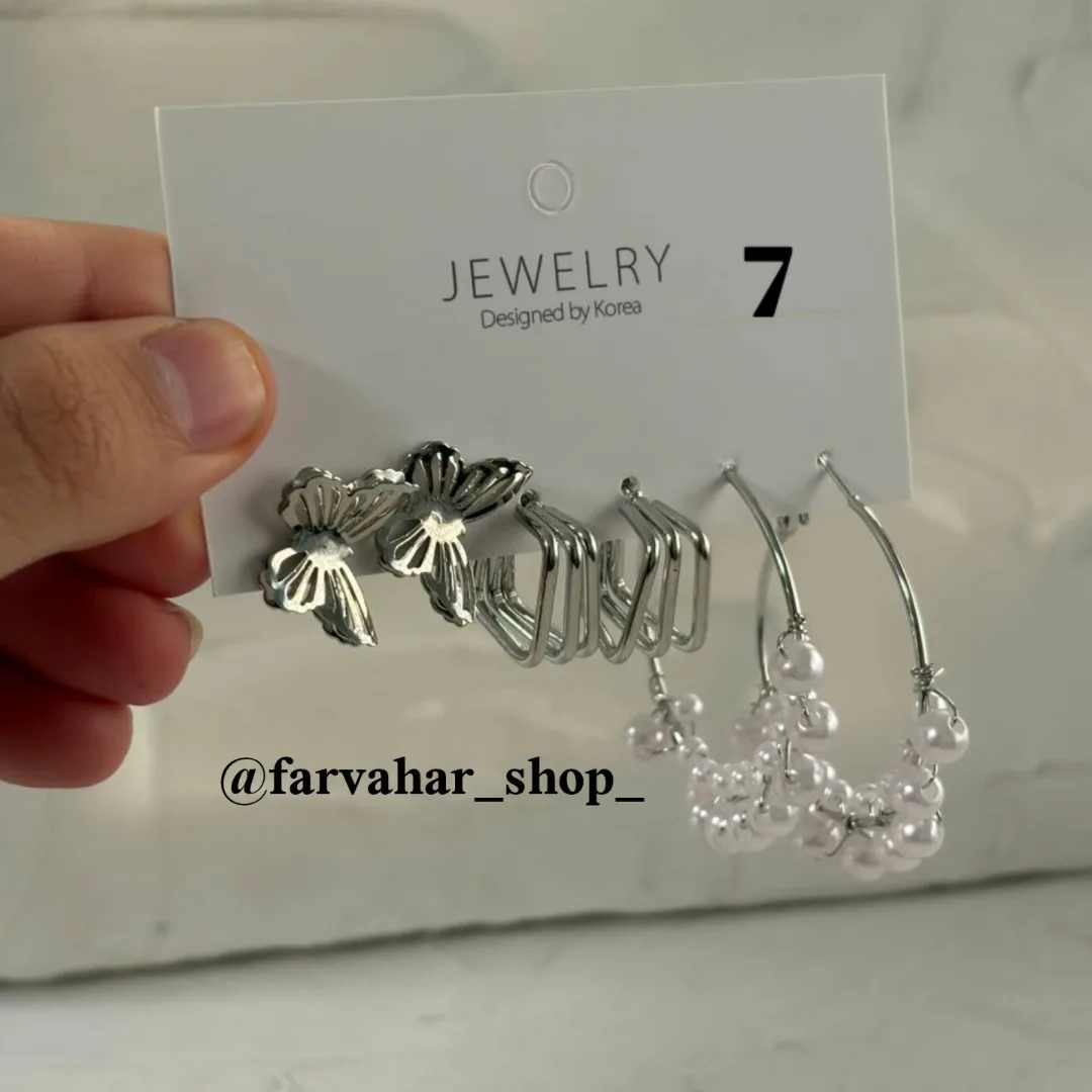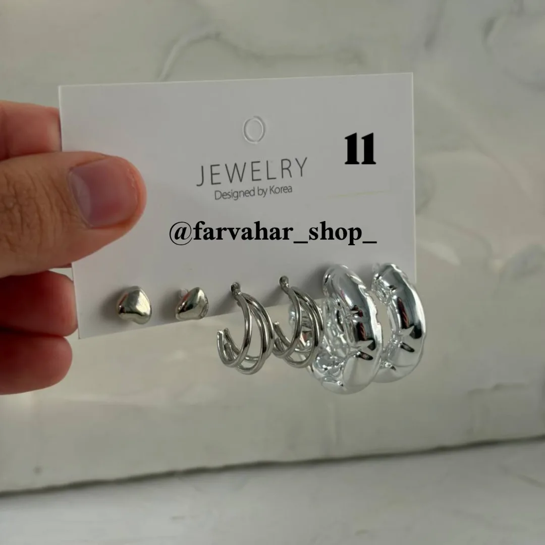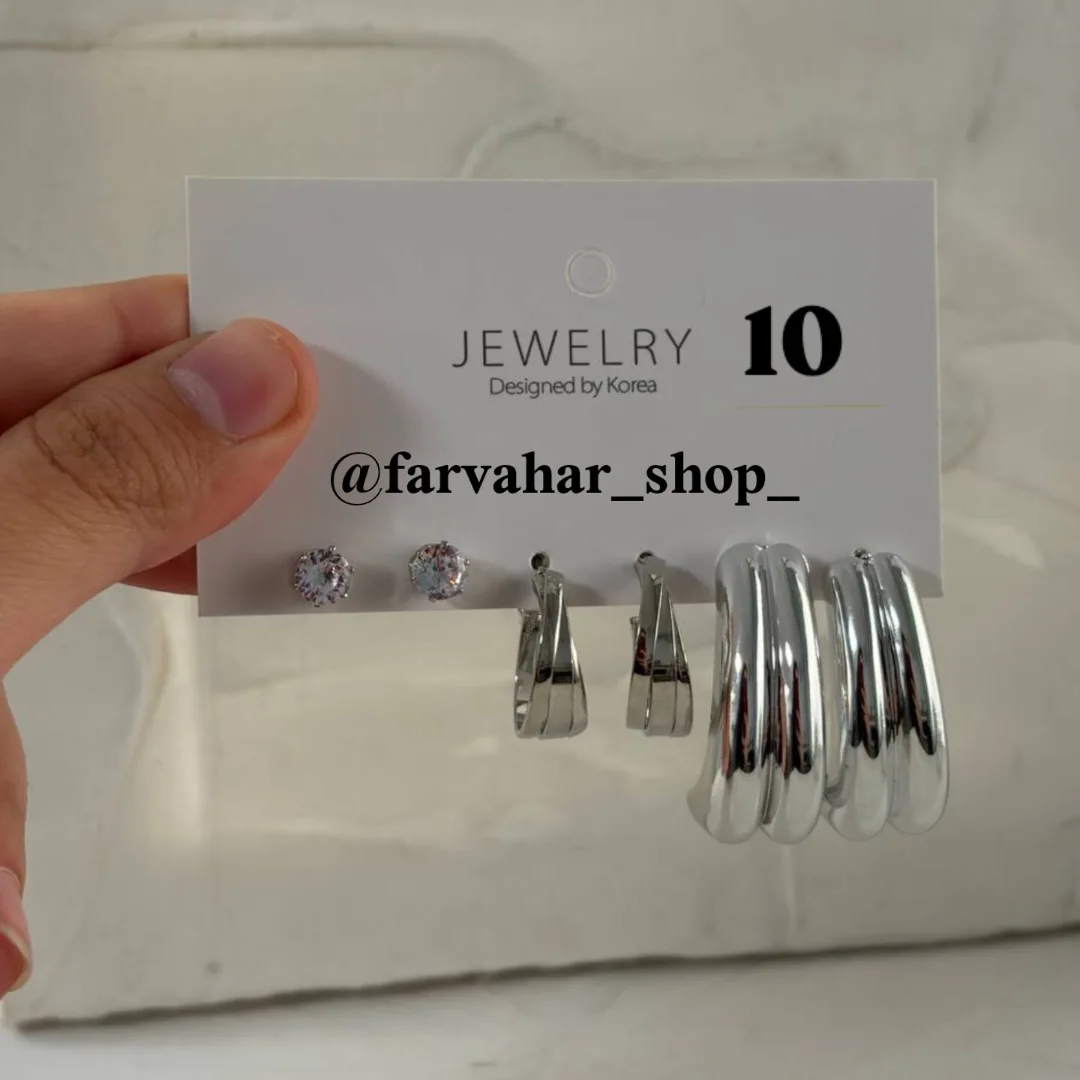 کلی پک گوشواره های سیلور جذاب داریم 🥲 آبکاری شده ✅ به صورت پک به فروش میرسد (هر پک شامل 3 عدد گوشواره)