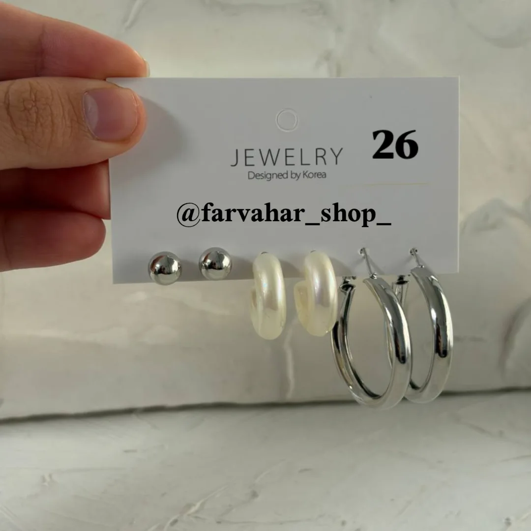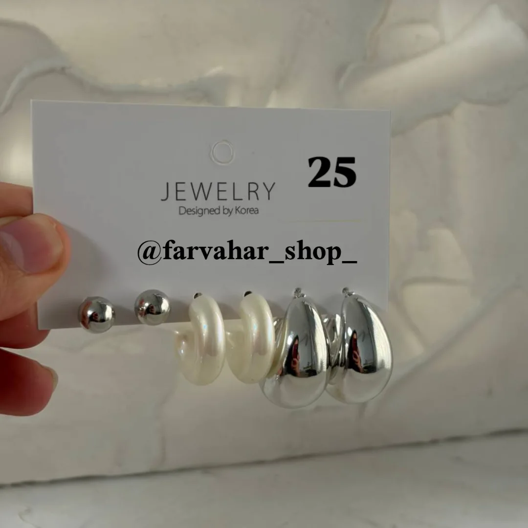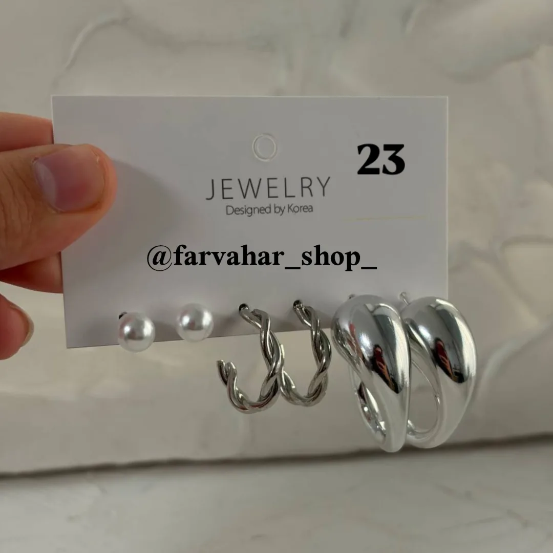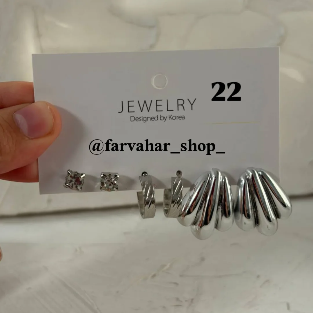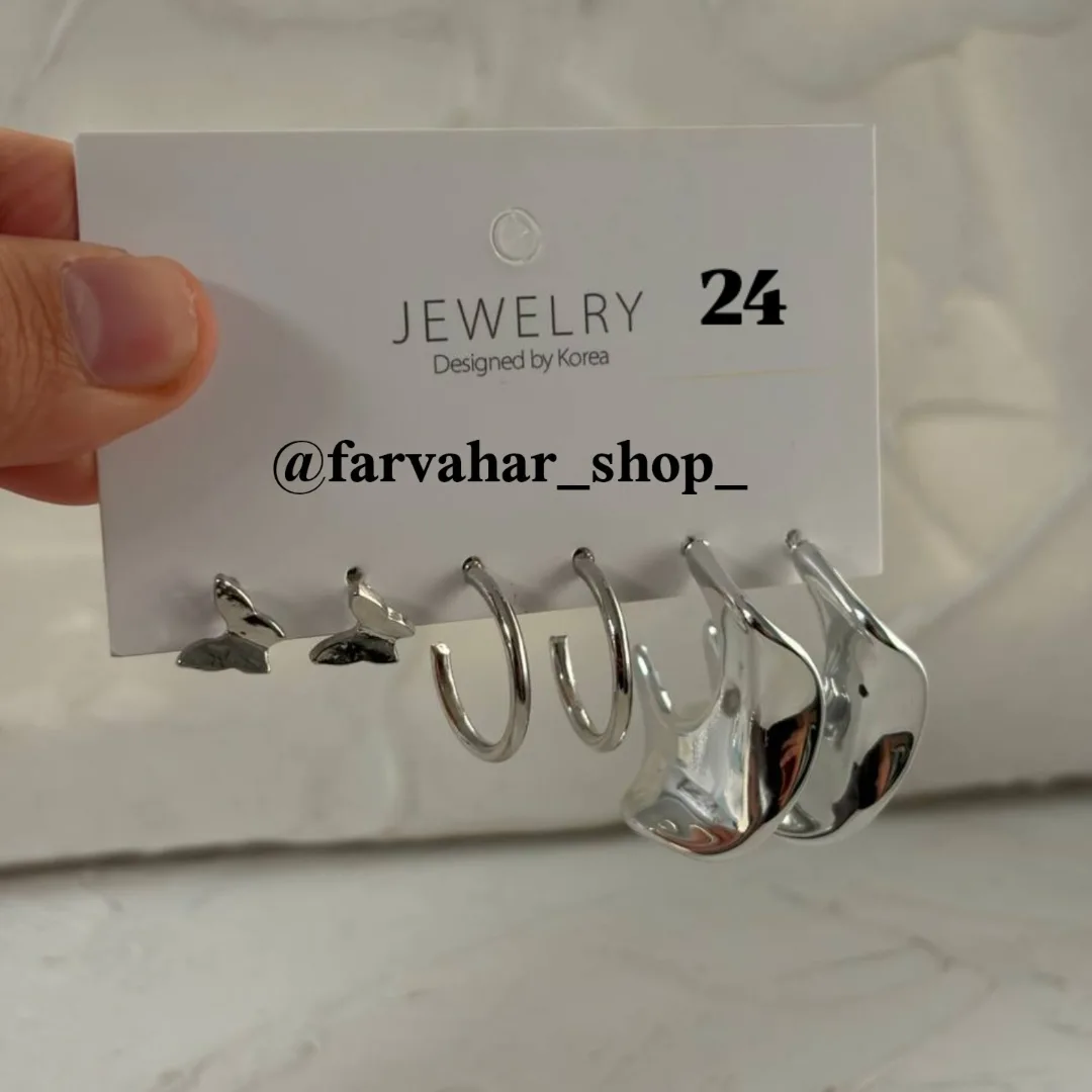 کلی پک گوشواره های سیلور جذاب داریم 🥲 آبکاری شده ✅ به صورت پک به فروش میرسد (هر پک شامل 3 عدد گوشواره)