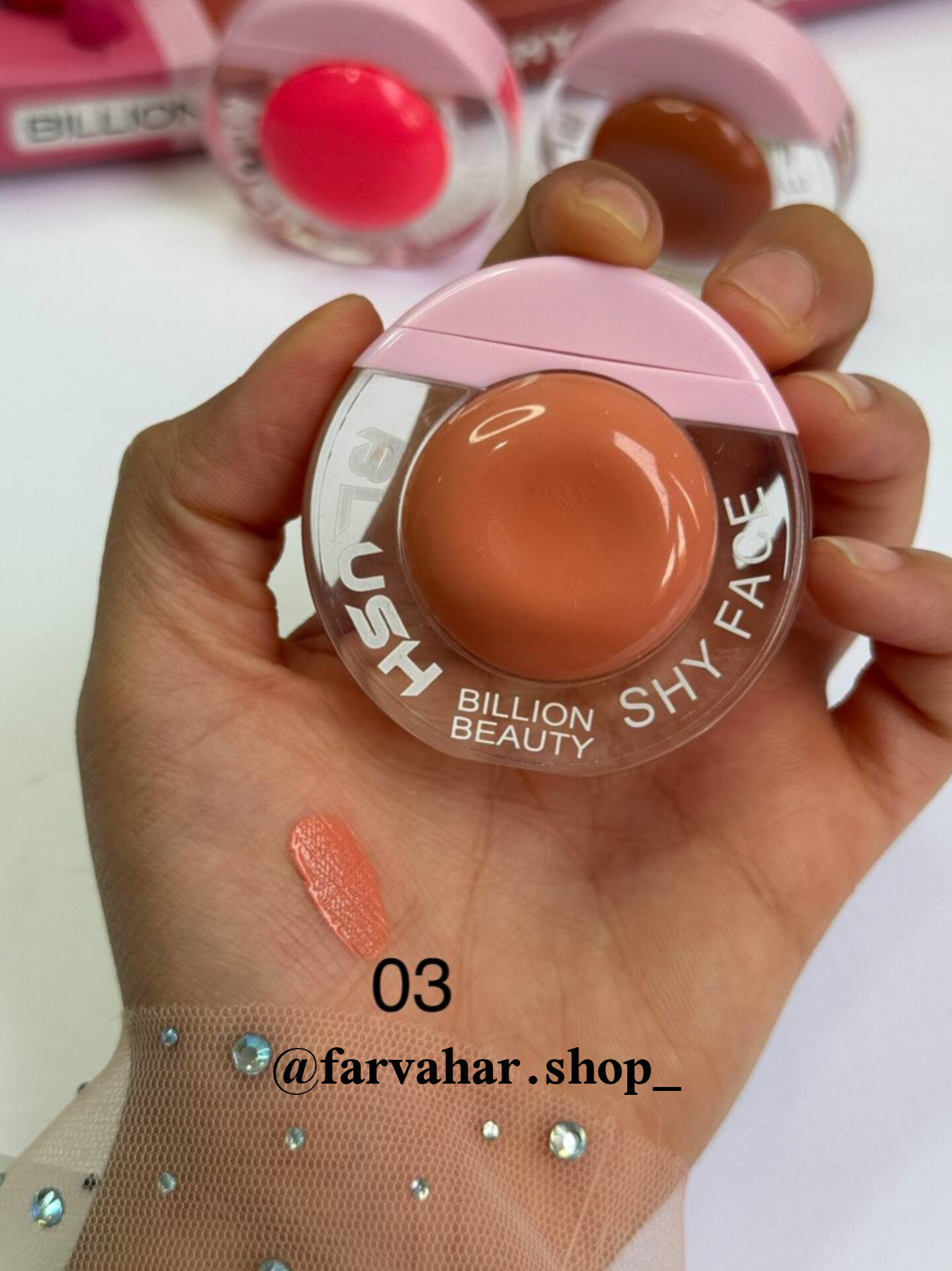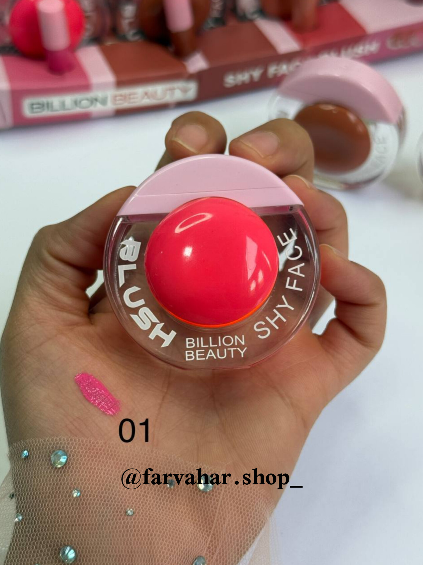 وزن : 14 گرم. دارای 4 رنگ : 01 صورتی / 02 قهوه ای / 03 کرمی / 04 بنفش ملایم. برند : Billion Beauty. نوع : رژگونه مایع. بافت : موس ـ مخملی. جلوه نهایی : نیمهمات طبیعی. ماندگاری : حدود ۱۰ ساعت. ضدآب. رایحه : گل رز و وانیل ملایم. مناسب همه نوع پوست. نوع پوشش : سبک و یکنواخت. رده سنی : ۱۵ تا ۴۰ سال. ترکیب پیشنهادی : کرم پودر یا هایلایتر روشن. پاکسازی : با میسلار واتر یا شوینده روغنی.