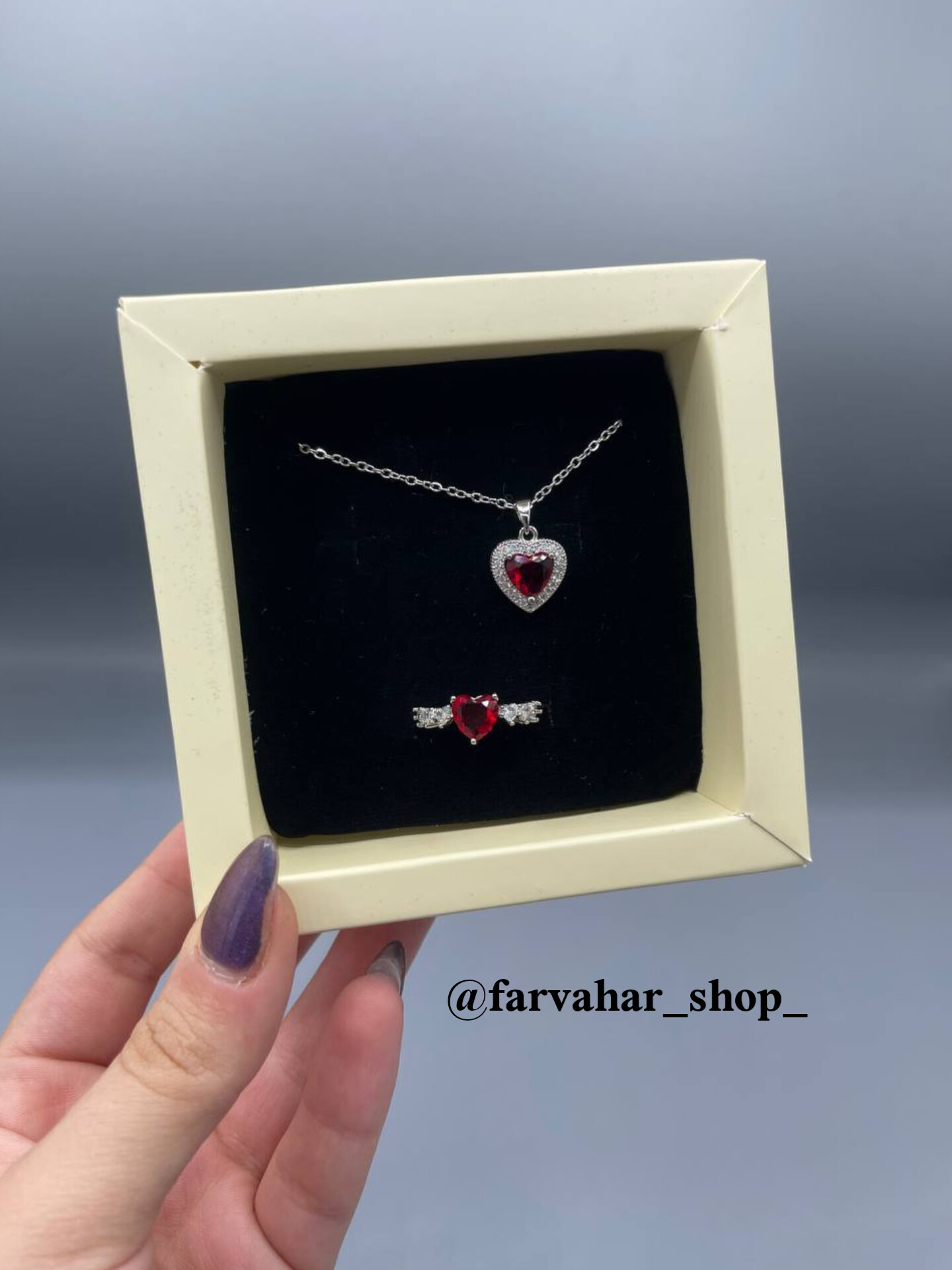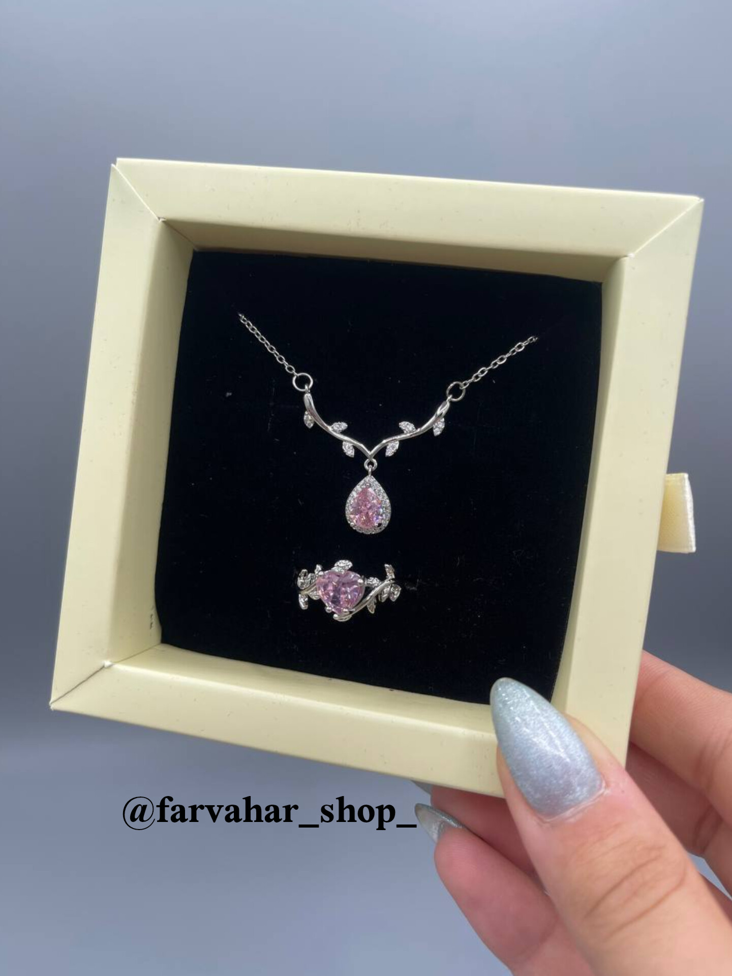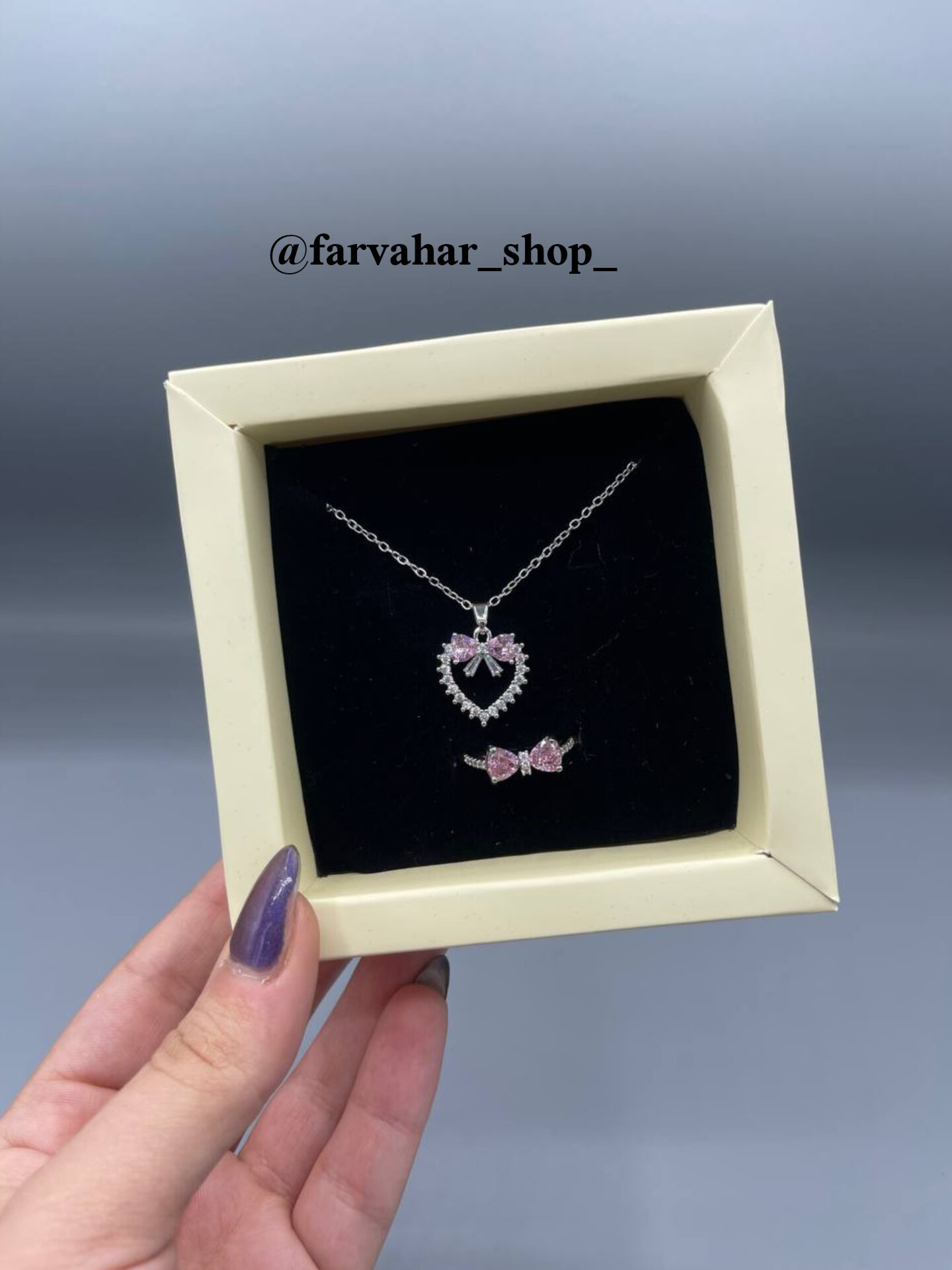 هر پک‌ شامل یک گردنبند و یک انگشتر. باکس کشویی. رنگ باکس رندم ارسال میشه. مناسب هدیه دادن 🎁. در صورت نبودن موجودی محصول مورد نظر در سایت به اینستاگرام پیام بدین 🧡
