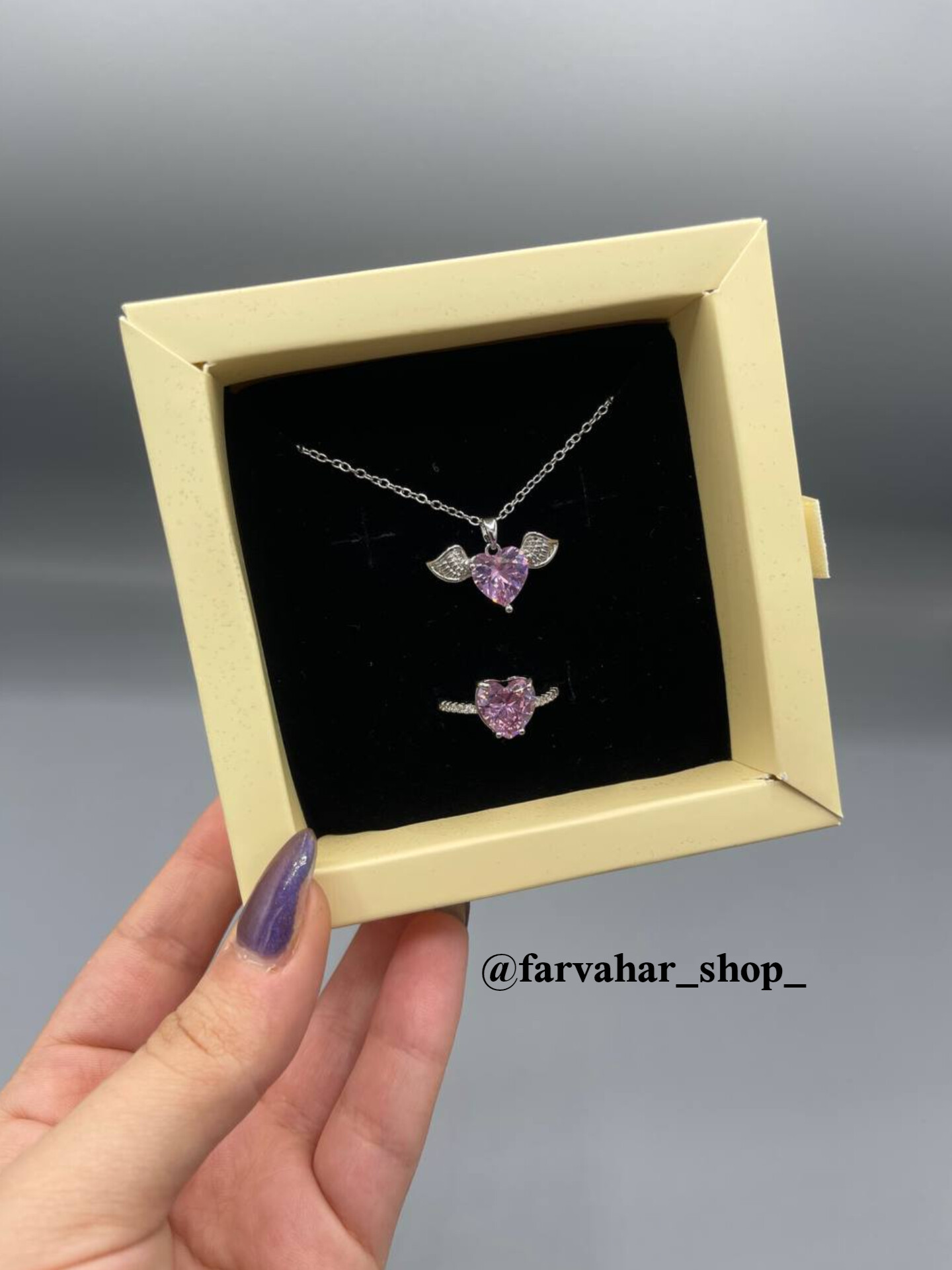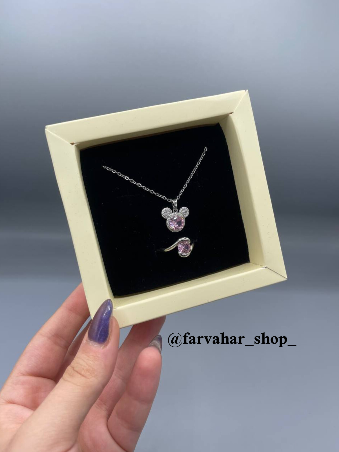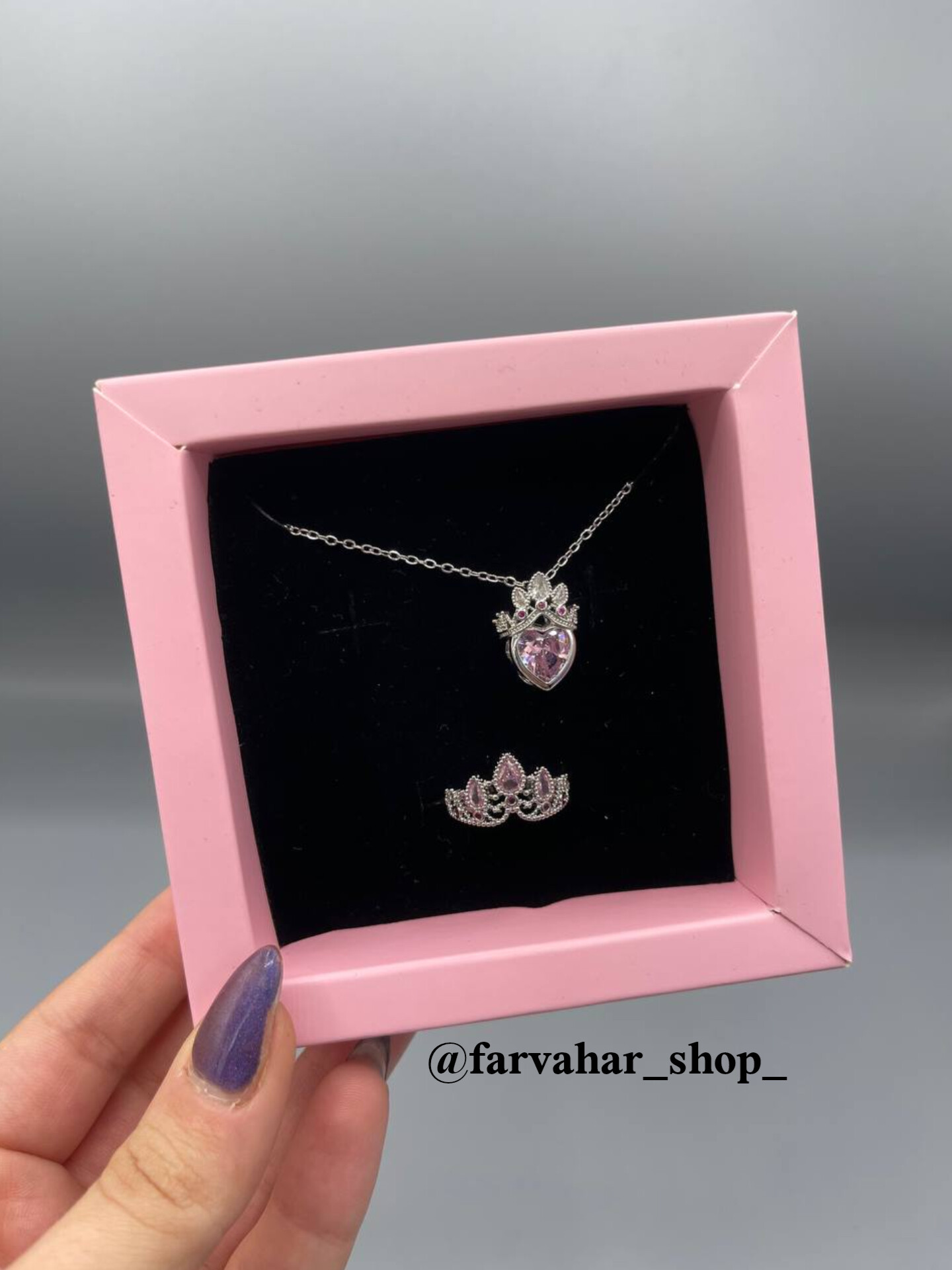 هر پک‌ شامل یک گردنبند و یک انگشتر. باکس کشویی. رنگ باکس رندم ارسال میشه. مناسب هدیه دادن 🎁. در صورت نبودن موجودی محصول مورد نظر در سایت به اینستاگرام پیام بدین 🧡